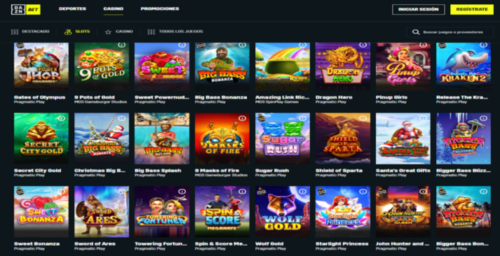 Tragamonedas y juegos disponibles en el Casino Dazn Bet.